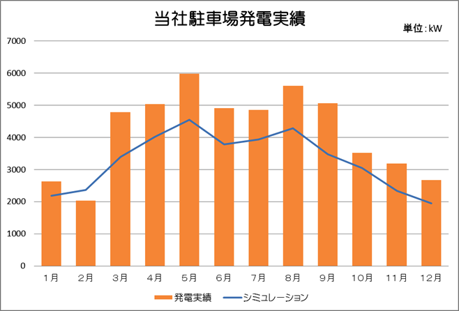 当社駐車場に設置している太陽光発電システムの実績です。